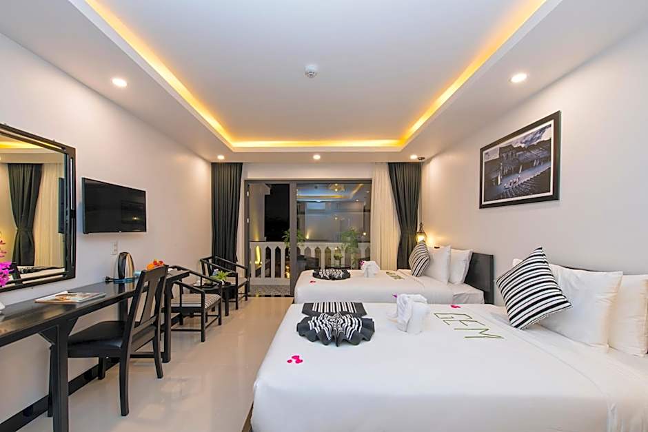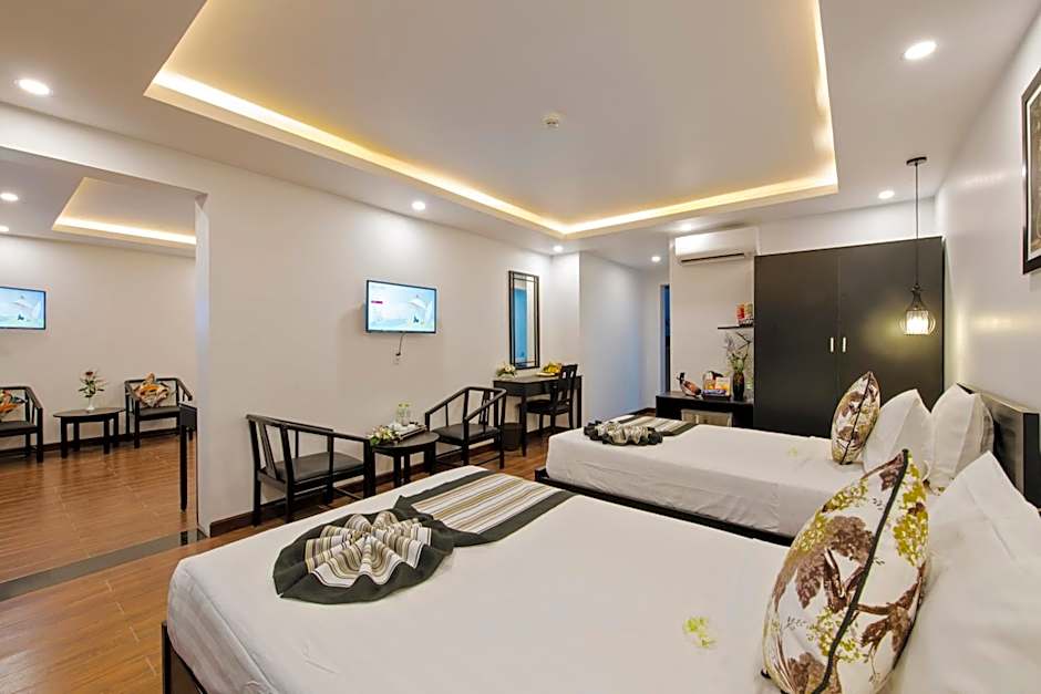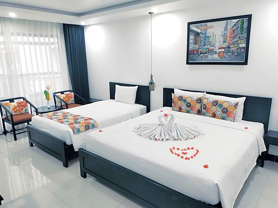 The spacious air-conditioned family room offers a flat-screen TV with cable channels, a mini-bar, a wardrobe, a safe deposit box as well as garden views. The unit has 3 beds.